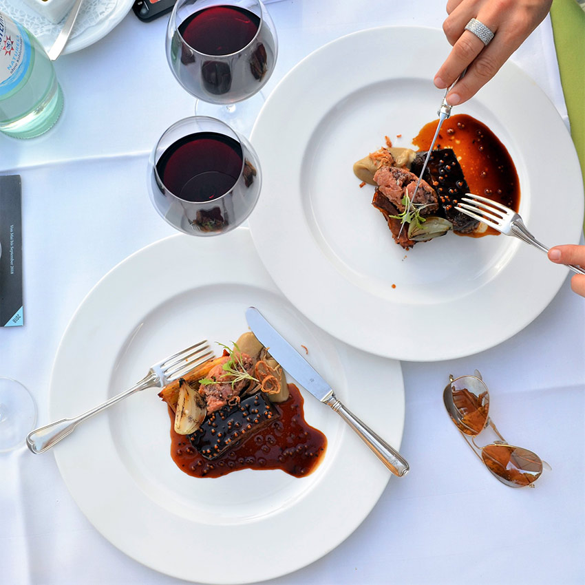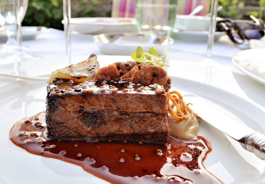 Gemeinsam gestalten sie die saisonal wechselnde Speisekarte, die unseren Gästen eine zeitgemäße Küche offeriert, die nicht nur von klassischen Gerichten geprägt ist. Die Vorliebe für frische und heimische Produkte, wie z.B. Rücken und Keule vom hiesigen Damkalb spiegelt sich auf unserer à la carte Karte sowie bei den Banketten wider.